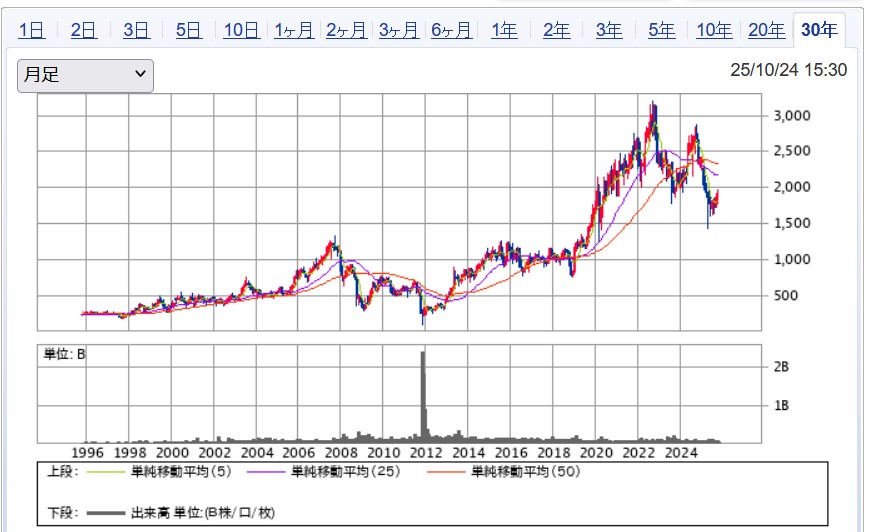 直近の株価をみてみると驚きます。当時も今もブログ主の理解では株価推移の予想は不可能です。